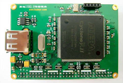 USBMOD6 module is Beijing Huanuo Ming Electronic Technology Center designed a high-speed USB2.0 data transfer module, the effective stability of real-time data transmission speeds of up to 32M bytes / sec. Higher transmission speed can be customized, up to 44M bytes / sec. The module is fully shielded complex USB2.0 protocol, the computer's USB2.0 interface into a transparent parallel data bus interface and an ordinary serial port. Can easily with FPGA, CPLD, DSP, ARM, microcontroller and other external controller. On the host computer to provide proprietary dynamic database to facilitate a variety of programming languages is called. FPGA programming and open source VC application design, the use of the module, you can complete in the shortest time high-speed USB2.0 data transfer.